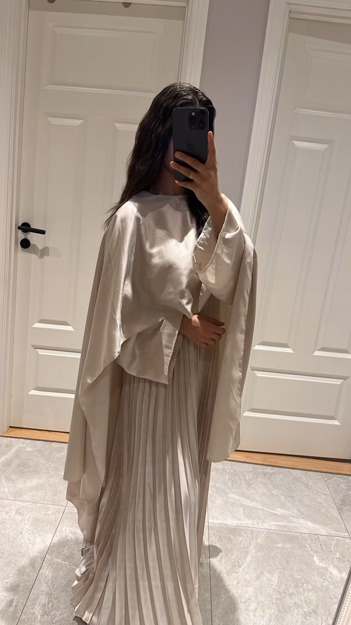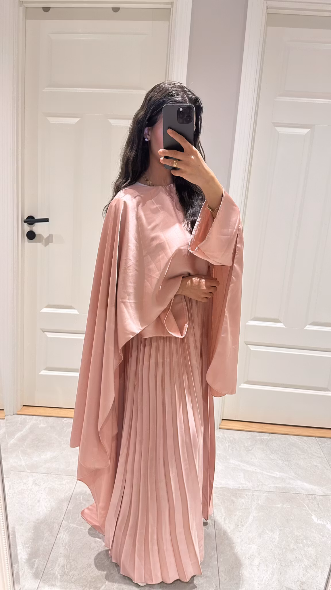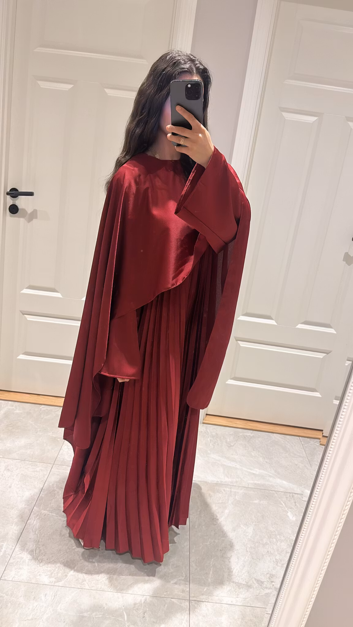Pleated satin dress, long cape, length 138 cm, ONESIZE