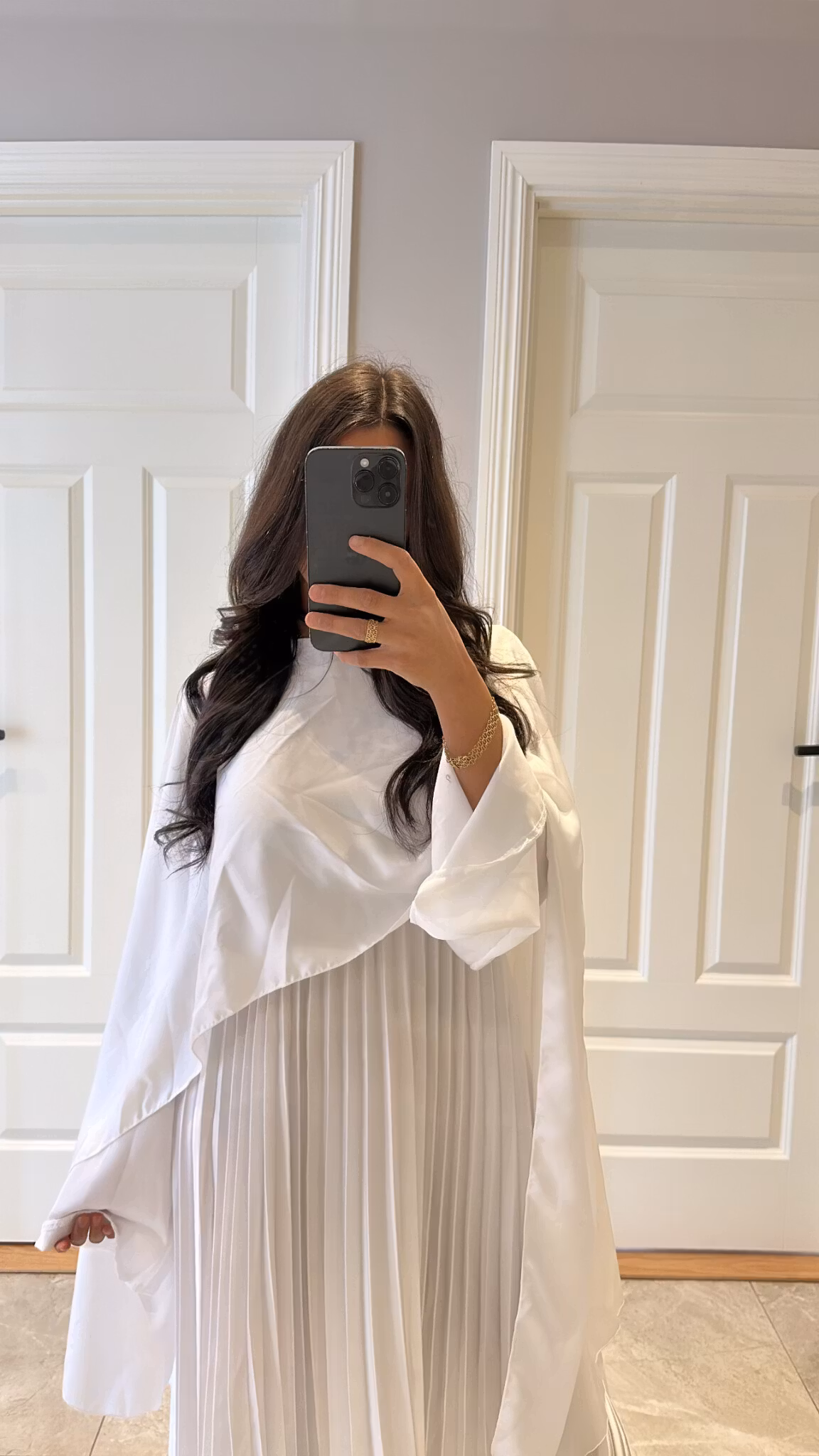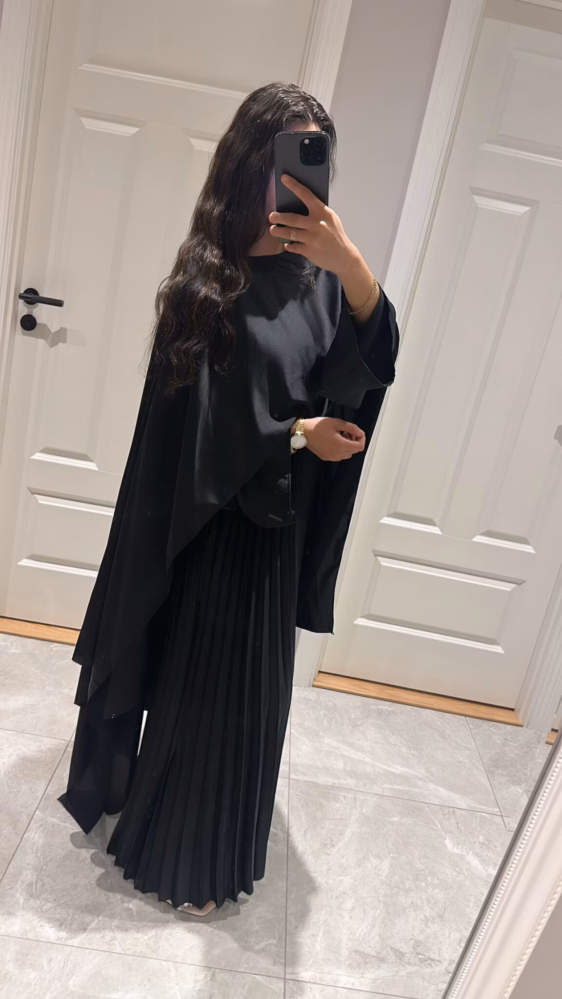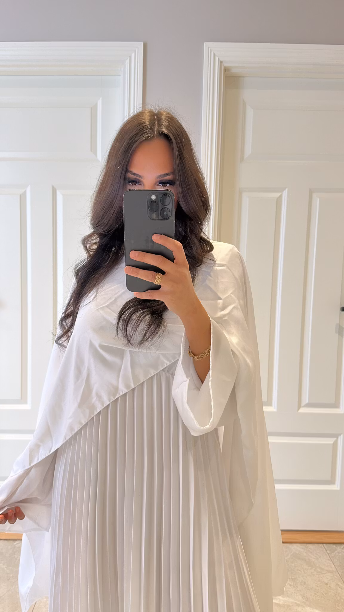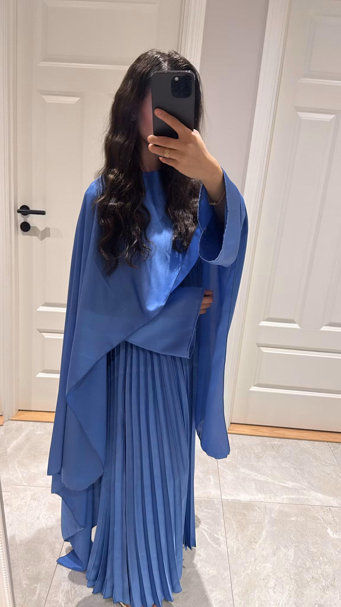Pleated satin dress, long cape, length 138 cm, ONESIZE