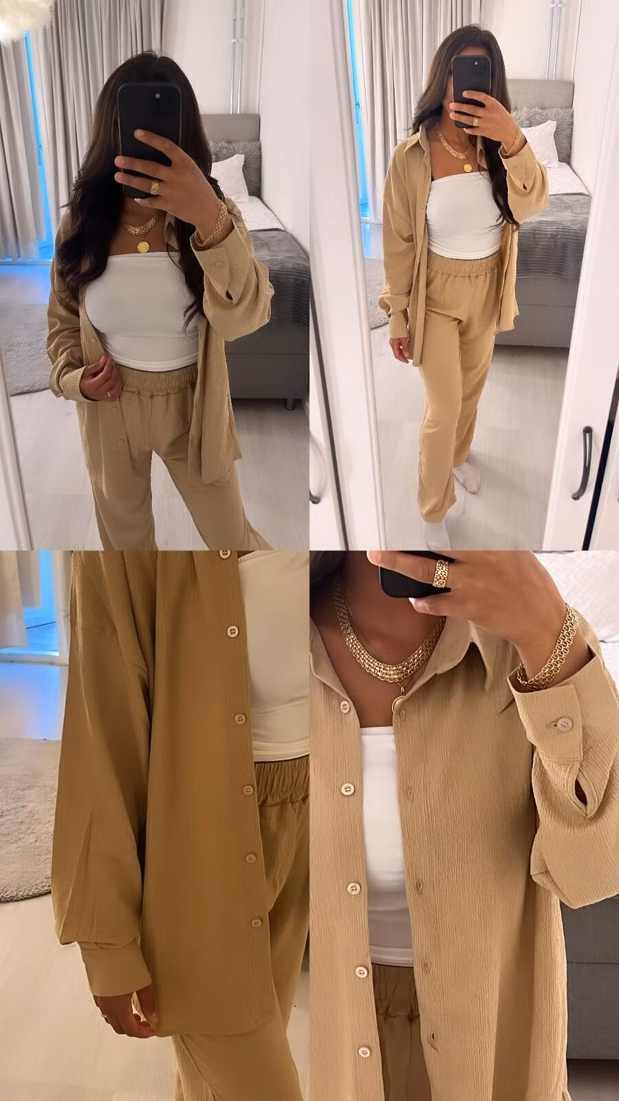 •Ett matchande set med skjorta och byxor.